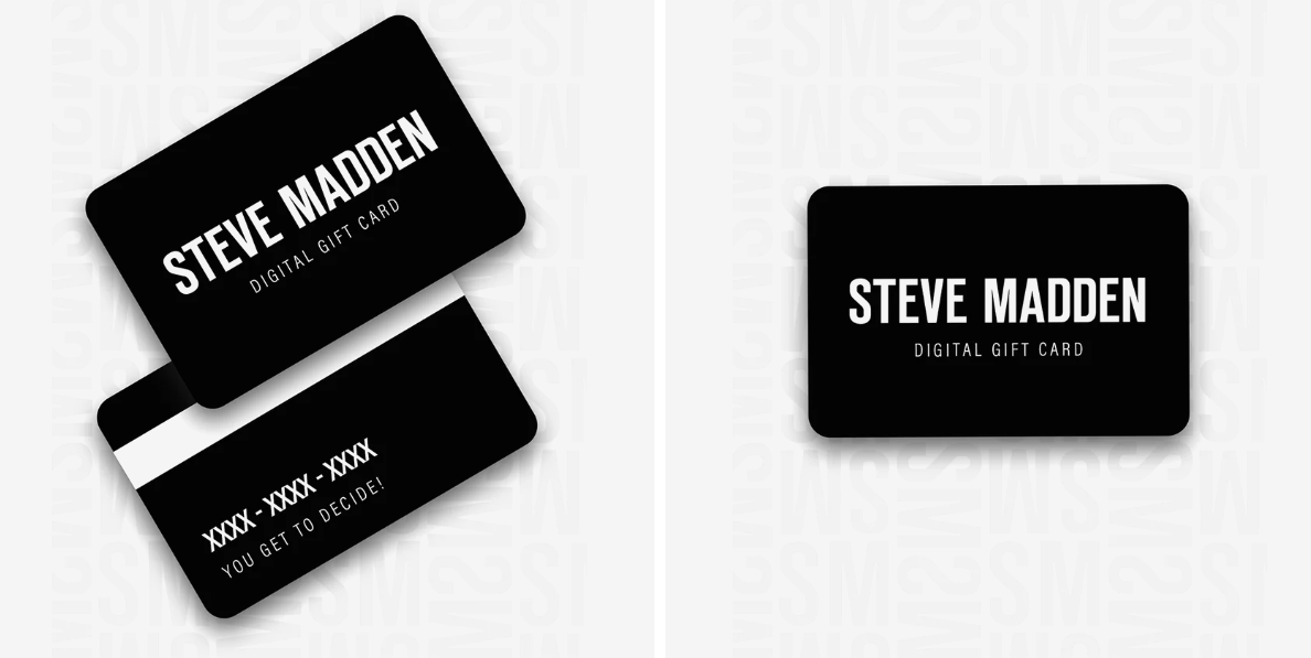 Steve Madden online gift cards have you covered for every occasion, budget, and style. Make gifting easy for everyone with this fully digital gift card.